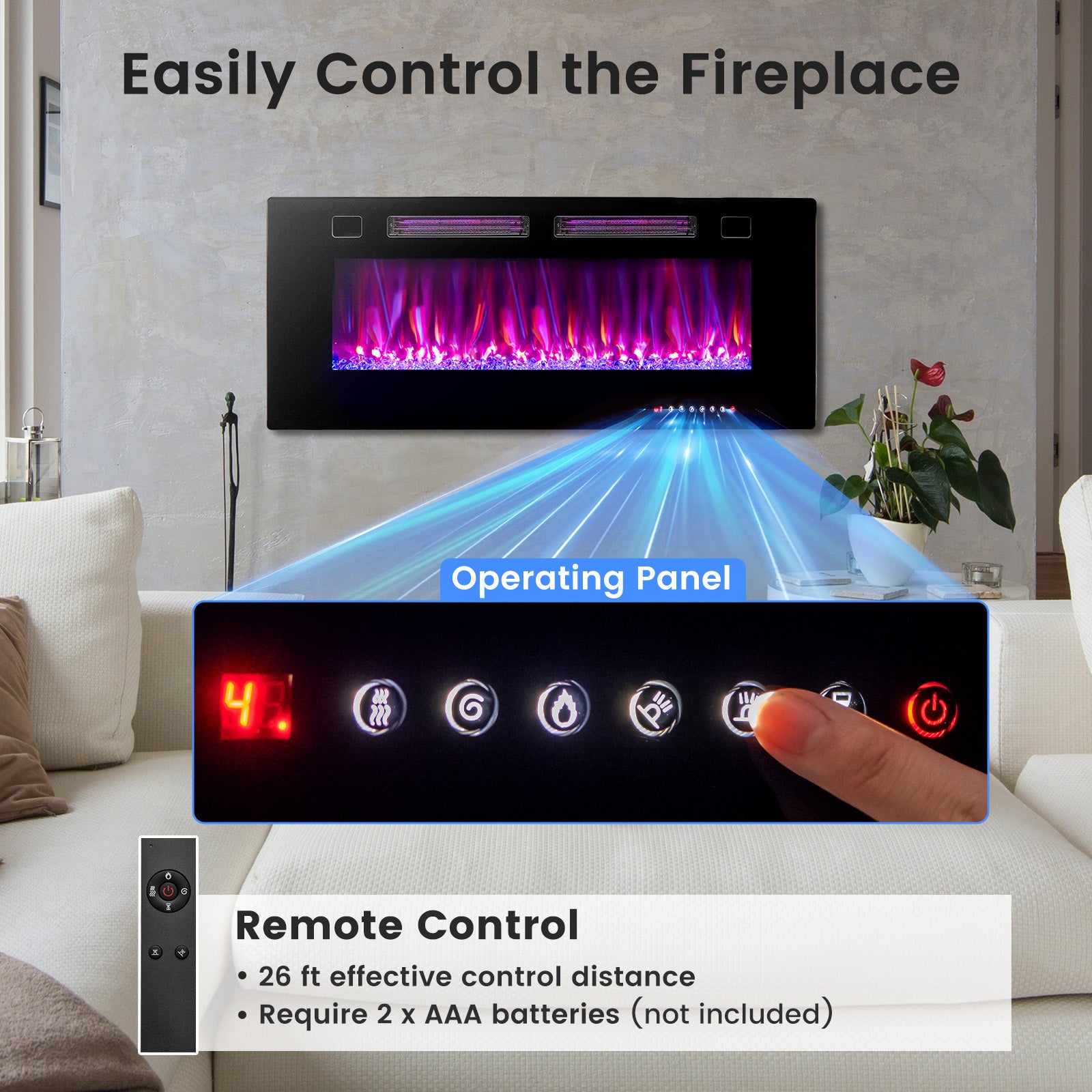 ● 2 Installation Methods: With 3.19” thickness this ultra-thin fireplace add a touch of sleek to your indoor occasions. This electric fireplace not only can be recessed in wall but also can be wall-mounted with the included preinstalled mounting bracket. Please do not cover the air outlet and leave at least 8 inches of space around the electric fireplace.