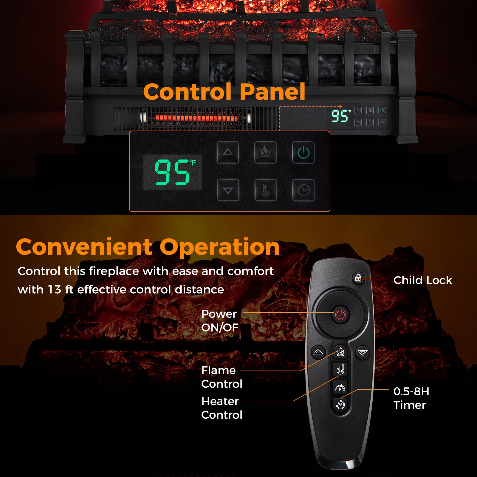 ● Remote Control Convenience: The remote control of this electric heater fireplace boasts an effective range of 13 ft allowing you to adjust the heater flame and timer settings (from 0.5H to 8H) effortlessly from the comfort of your sofa. The control panel is also included for extra convenience.