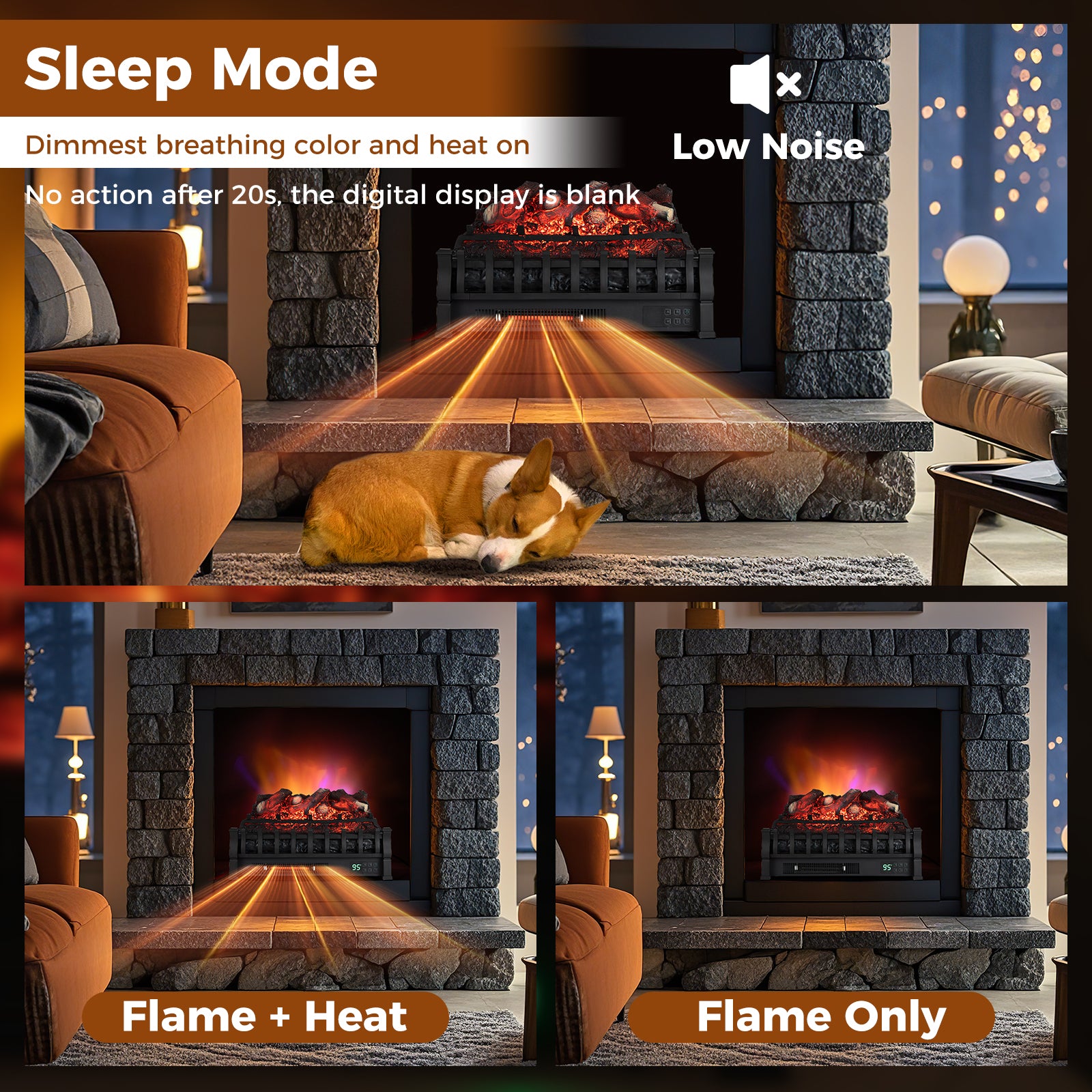 ● Customizable Colors and Brightness: With 5 flame colors and 5-level brightness this infrared heater offers endless possibilities for a soft subtle glow or a vibrant lively display. Additionally this electric log heater includes a sleep mode just select the dimmest breathing color and turn on the heating function.