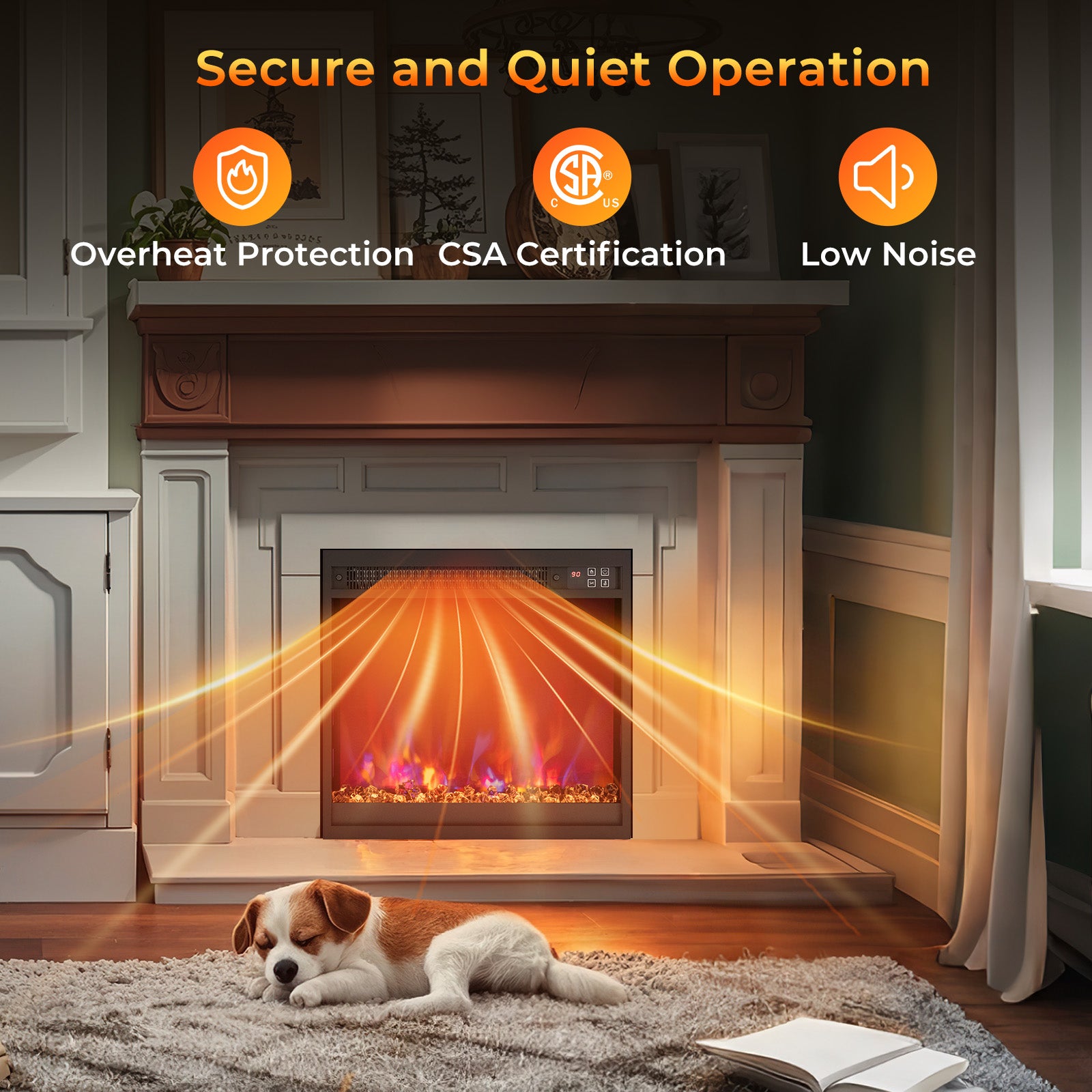 ● Safety Assured with Dual Protection: This electric fireplace heater is designed with an overheat protection system that automatically turns the unit off if excessive heat is detected. Furthermore the CSA certification reaffirms our commitment to safety and reliability ensuring peace of mind and cozy warmth in your home.
