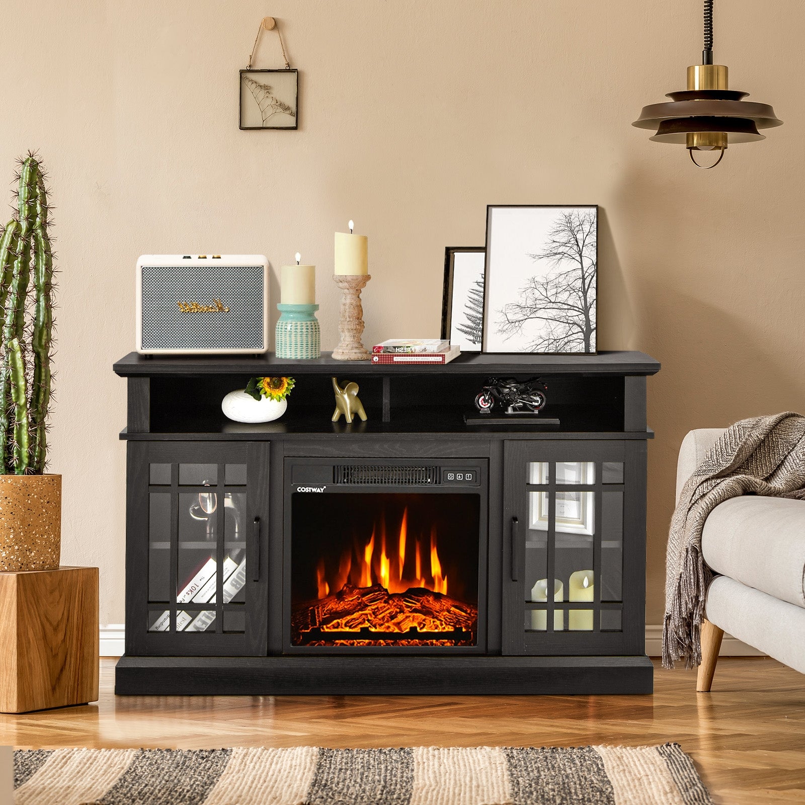 ●Sufficient Storage Space: This fireplace TV stand also possesses ample space for your daily storage with a wide countertop two open shelves and two side cabinets. The countertop is available for TVs up to 50". And the upper shelf in the side cabinet can be adjusted into 3 positions for items of different sizes.